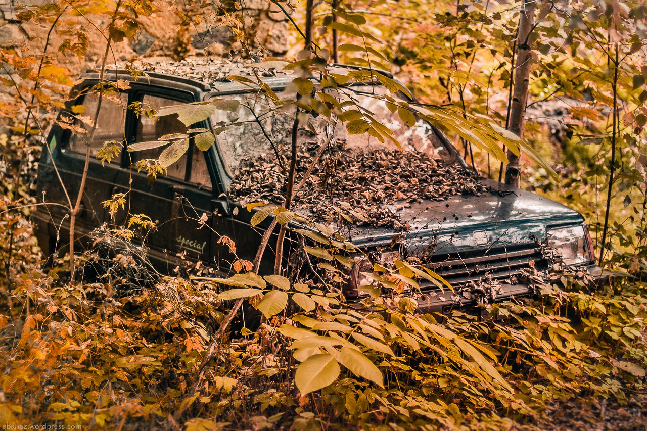 Joe Fortin I'm conflicted about things like this. On one hand, what a waste. The car could be recycled and most certainly NOT dumped in the woods.