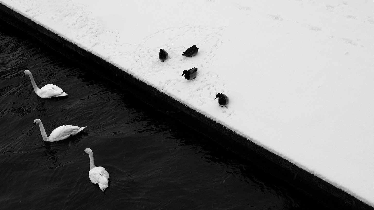 To zdjęcie wygląda jak inspirowane fotografia Marcina Ryczko, dzięki której swojego czasu stał się sławną osobą. Mam na myśli zdjęcie człowieka nad brzegiem rzeki karmiącego zimą kaczki i łabędzie. Pozdrawiam.