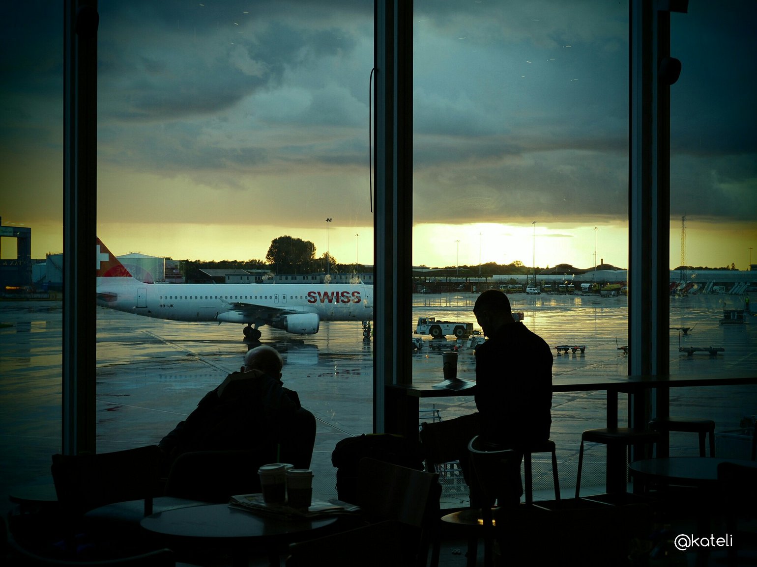 Kateli We did ! The sunset and the reflection on the wet runway was enough to cheer me up and give me something to do while waiting !!! ;0)