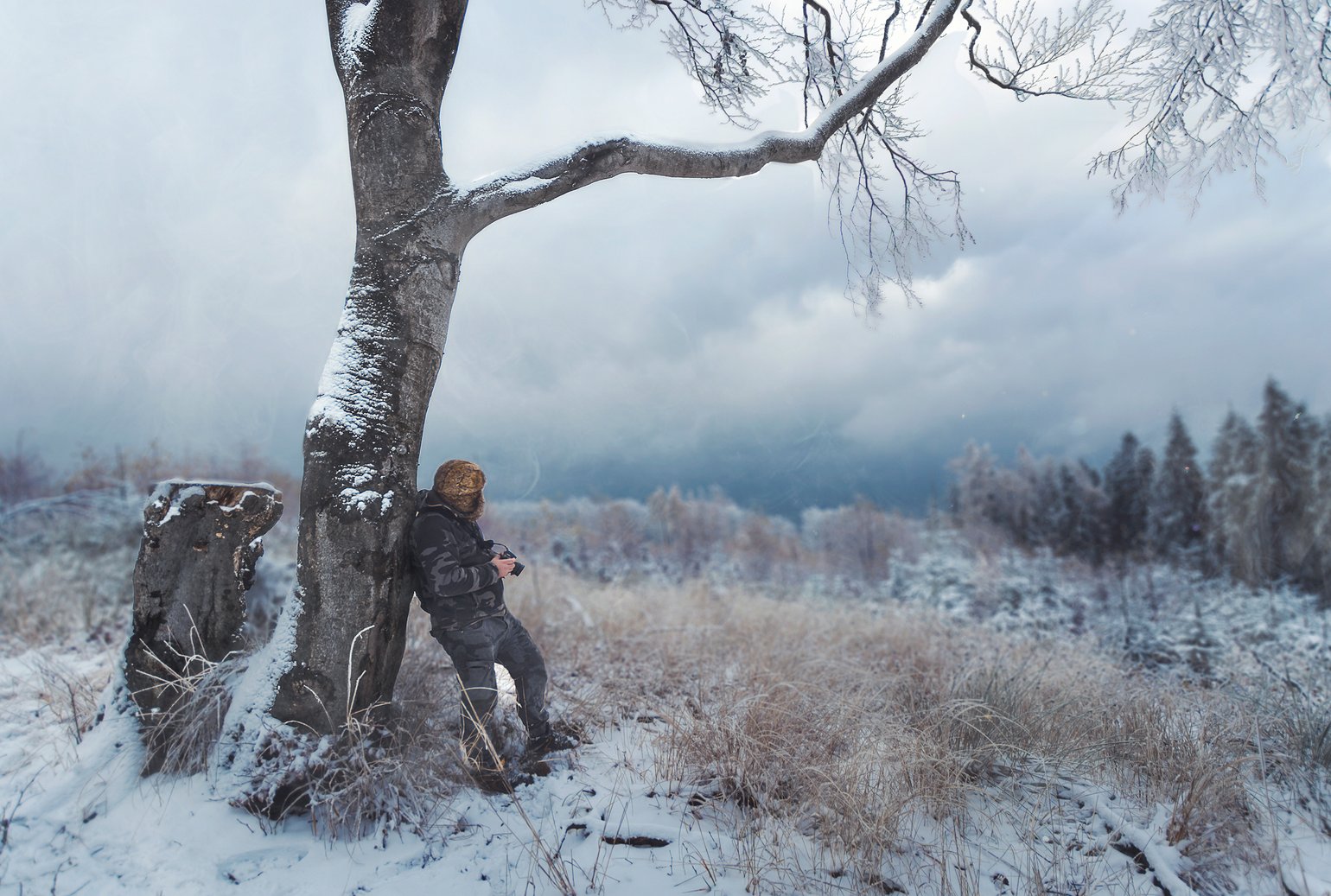 Szymon Łupieżowiec Ponieważ człowiek opierający sie o drzewo ma taką specyficzną czapke :D