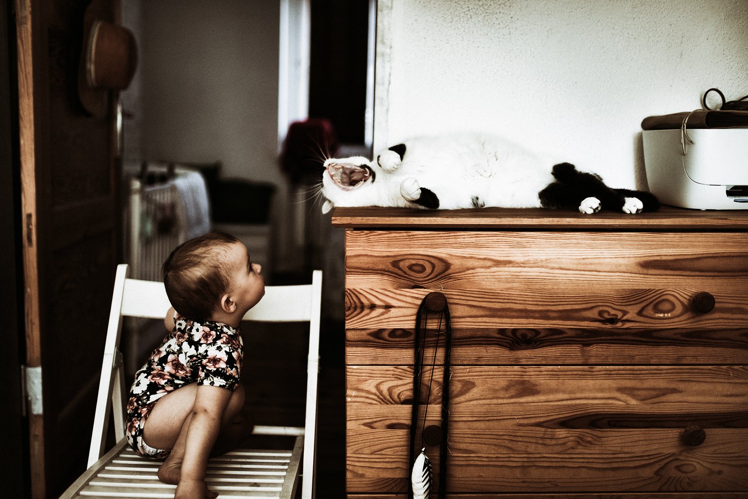 Lido Ziewający kot , kucające na krześle dziecko podgląda rozleniwionego kota i nie ma odwagi wyciągnąć rączki żeby go dotknąć . Wystarczy tylko radość patrzenia. Czasami piękne , dopracowane zdjęcia nic nie mówią, a Twoje powiedziało wiele. Pozdrawiam
