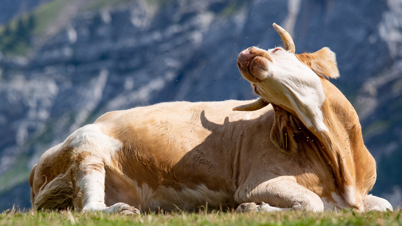 you can see that flies are a nuisance to this cow - cow express it with their whole body