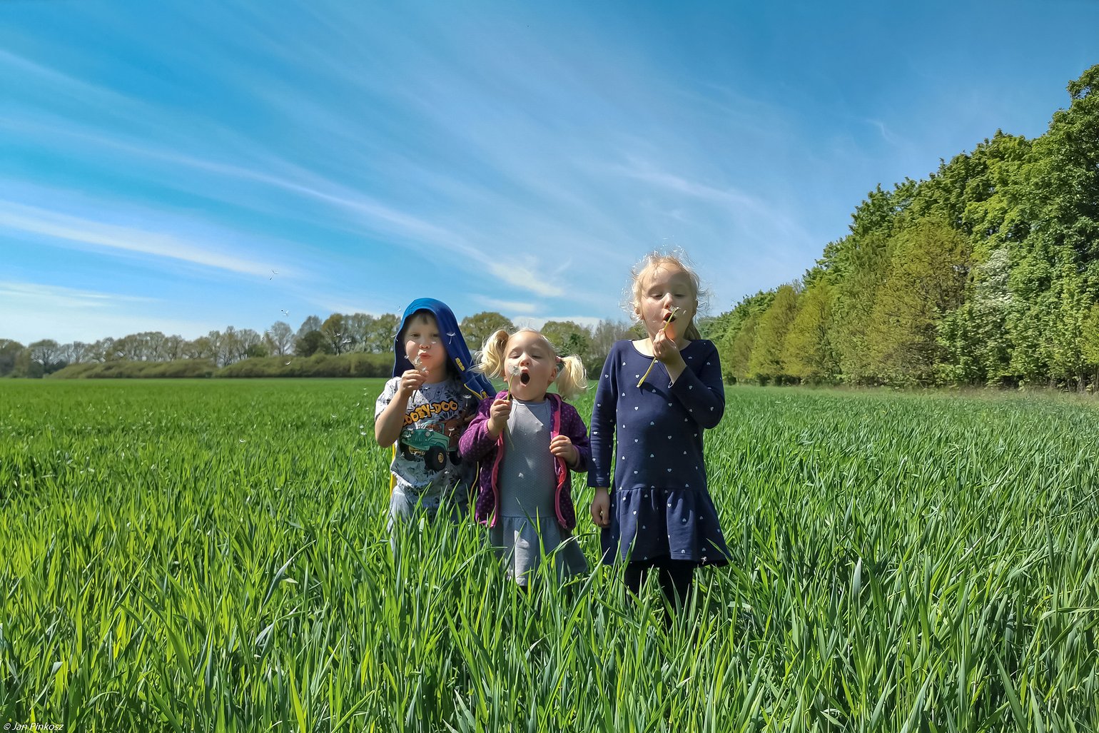 Jean-Francois CARETTE Ils ont l'air très heureux ces 3 petits enfants, une belle équipe de souffleurs de pissenlits