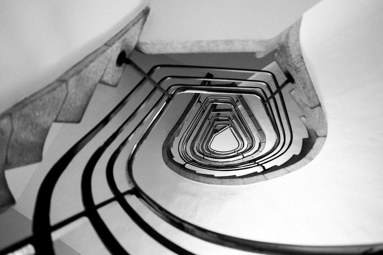 fabwg Oui, un cadeau, là aussi. Immeuble très "art-déco" en fait du début du 20ème. Avais déjà photographié cet escalier mais jamais sous cet angle qui ma de suite fait penser à la silhouette d'un chat. C'était 23h et des poussières, juste le temps de publier la photo du jour. ;)