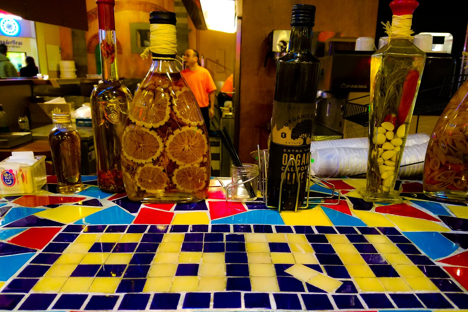 Charles Gagnon Apparently Ebru is a style of marbling commonly called the "Turkish" style, which I think the counter was supposed to imitate. (It's also the name of the restaurant)