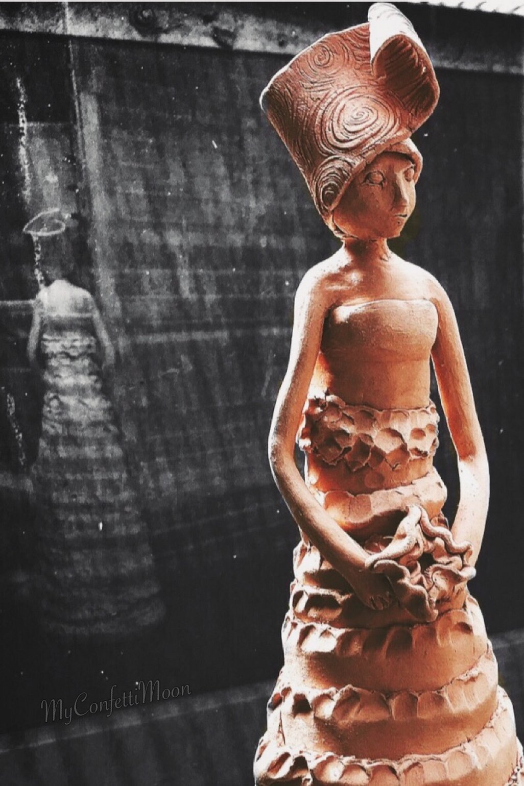 Satoshi T Beautiful clay sculpture. close up of her face with reflection of her back is good combination.